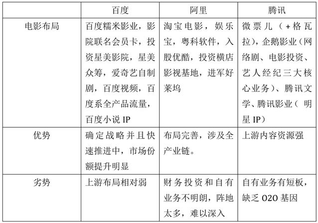 百度:快速進擊拆開來說,百度今年對片子行業的投入力度是BAT中最大的,這與百度200億轉型O2O的團體戰略息息相關。 2015年,百度糯米影業幾件重要事情是,投資星美院線,推出影院聯名會員卡,上線超級影院商城,與星美合作眾籌新影院,推出“實時票房、用戶畫像、搜索指數、口碑輿情”大數據產品,除了百度糯米產品支持之外,百度手機搜索、百度輿圖四周都對片子流量完全放開,另外結合鼎力度的院線線下推廣。 這些聽起來簡樸,實在背后是百度內部資源的大整合,包括流量、技術,以及從戰略到執行的快速推動力。 利用從淺到深的原理,百度糯米影業今年以會員+帶動銷售,弱化團購,而是用虛擬會員卡的方式跟二十來個品牌院線合作,籠蓋了超過80%的票房來源地。用大數據產品以及高價值流量,來取得跟院線的深度合作,用市場推廣進行線下YIN流。 百度糯米影業正在從下往上入侵片子行業工業鏈,從銷售切入去深入院線,影響發行,用優質流量為院線以及單獨的片子提供宣發服務,下一步應該就是制片,以及再上游的IP培育了。 百度糯米影業現在要不要做影片的制作發行暫時不可知,不外愛奇藝自制劇能力不錯。而百度小說也可以成為IP起源地。跟著在片子行業的深入滲透滲出,這些提上日程也只是遲早的事情。 總體來說,百度糯米影業在片子行業也屬于后來者,但最大的上風是百度全力以赴快速進擊,這是百度與阿里、騰訊最不一樣的地方。也恰是如斯,百度在這場爭斗中,應該有更多勝算。 阿里:買買買阿里在片子行業中的布局用三個字可以形容“買買買”。從博納到粵科,從橫店到好萊塢,都留下阿里金主的身影。 博納是籠蓋片子制作、發行、廣告、藝人經紀多方位一體的全工業鏈公司,而粵科軟件公司,是院線系統“火鳳凰”制作商。之前在線選座的介入者,以能與火鳳凰直接交換數據為榮。否則就只能從第三方接入“二手數據”。 阿里巴巴與浙江橫店成立影視公司,要主攻未來的高科技大片兒。另外還公布要進軍好萊塢,把國際上的好片子引入中國。在自有產品支持上,除了淘寶片子之外,還有理財產品娛樂寶。 這種大開大合的布局,真是讓人費解。這意味著,要么很厲害,像圍棋巨匠,看似閑子,最后卻連成殺局。要么只是在做財務投資,只是看起來很戰略而已,實在未必須要買通。 恕作者駑鈍,比較偏向后者,究竟阿里巴巴也不是萬能的,來往、口碑都沒太做好,淘寶片子砸下巨額補貼,今年進展也一般般。另外在阿里整體布局中,本地糊口一直是高舉輕打,不落實處,不知片子會不會意外? 騰訊:松耦合的方陣騰訊系孵化了一個微票兒,把格瓦拉合并了。這種高維攻擊低維的方式,應該頗讓創業者心寒吧。 騰訊之強,微信之勢已經不需要贅述。但是,騰訊系在片子行業的布局是強者松耦合的狀態。旗下有騰訊影業和企鵝影業,內部有整合了格瓦拉的微票兒團隊。 騰訊影業側重于發掘與聯動內外部在文學、動漫、游戲等多個泛娛樂領域的明星IP,核心是打造更廣泛影響力與更多貿易價值的明星IP,而企業影業將在網絡劇、片子投資、藝人經紀三大核心業務上發力。 騰訊影業、企鵝影業乃至合并了格瓦拉之后的微票兒,單獨拎出來都還尚可。但對于片子行業的全整合來說,彼此之間的間隙大了點兒。 好比,影業培育的IP到片子制作,本身還有間隔,而有了片子之后,才能到發行、銷售推廣。另外,即使微信擁有龐大的流量,但是微票兒在銷售的同時,也不能給到某一個單獨的影片以推廣資源。 所以這個耦合的方陣本身也存在良多無法銜接的區間,當然,跟著時間推移,這些空缺都可以被填補,但在能不能做和想不想做,以及做不做得成之間,又會多出良多變數。 所以說,2016年互聯網入侵片子行業很可能泛起垂直產品被生態打壓的變局。幾年前,格瓦拉曾經占據華東區在線選座超過70%的份額,但是卻被團購起家的貓眼片子截胡,2016年,垂直深入的貓眼則可能被BAT壓制,百度生態支持下的百度糯米片子,是最有望沖擊市場領先地位的。阿里和騰訊要鋪的面兒都太大了,收成期還得靠后。 年末將至,各家賀歲檔、春節檔從宣傳到銷售,又在爭得人仰馬翻。再過2個月,就會有新的銷售數據和排名了。 |