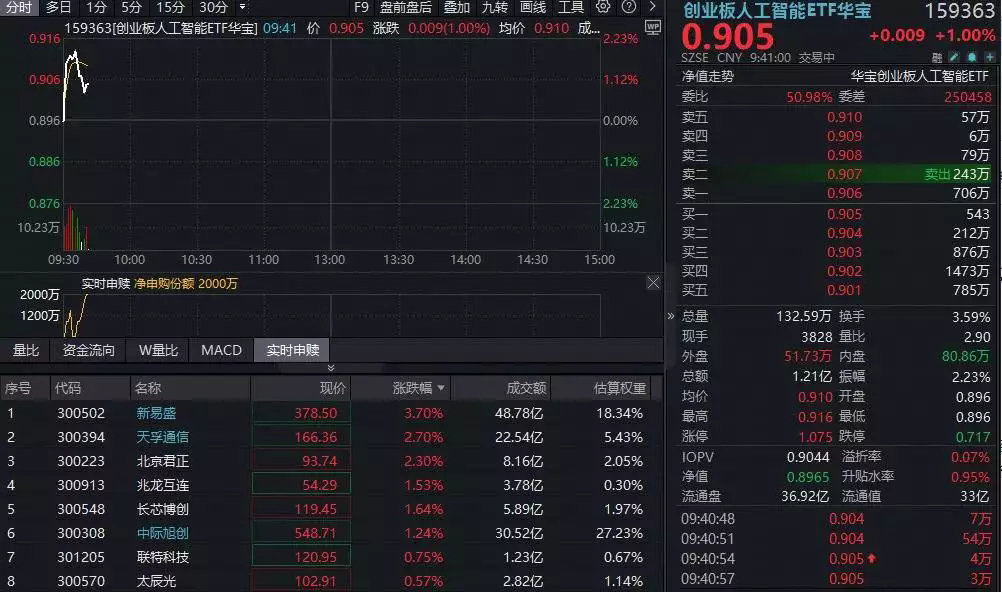 3日早盤,光模塊CPO等算力硬件持續活潑,新易盛漲超4%沖擊七連陽,天孚通訊漲超3%,中際旭創漲超1%。光模塊CPO含量超56%的創業板人工智能ETF場內價格一度拉升超2%,