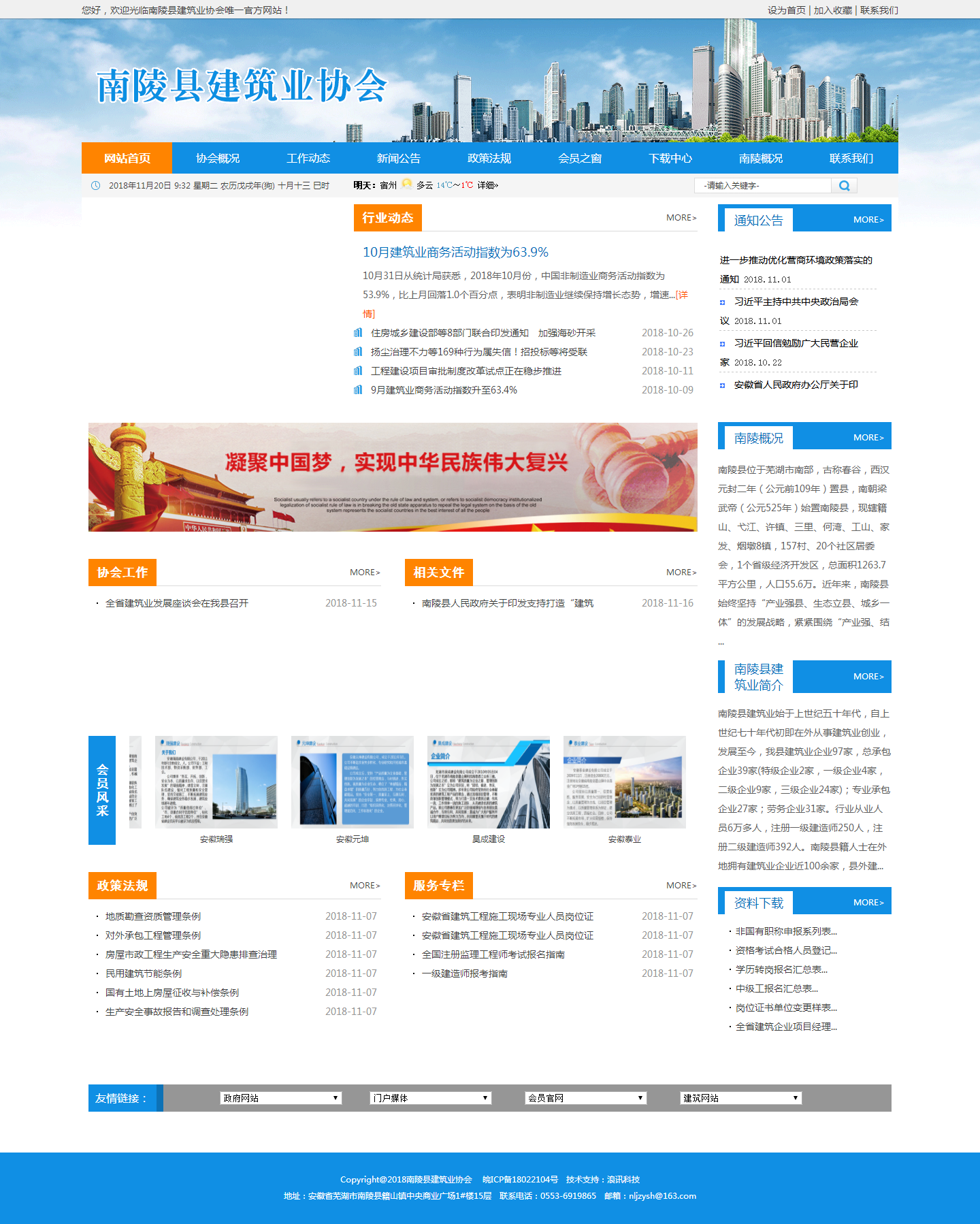 南陵縣建筑業協會成立于2018年4月,英文名稱:Nanling County Construction Industry Association.縮寫(NCCIA)。本會位于安徽省蕪湖市南陵縣籍山鎮陵陽中路中央商業廣場1#樓15層,是由本縣內從事土木工程勘察、設計、施工、安裝、工程監理、造價咨詢,材料生產(塑鋼型材、砌體材料、商品砼生產等)、建筑材料供應、建筑業科研等企業單位、社會組織自愿結成的行業性、地方性的非營利性社會組織。南陵縣建筑行業協會的宗旨是堅持黨的基本路線,貫徹改革開放的總方針,以經濟建設為中心,在建立社會主義的市場經濟體制中,促進會員單位適應市場經濟,轉換機制,提高效益,做大做強。
